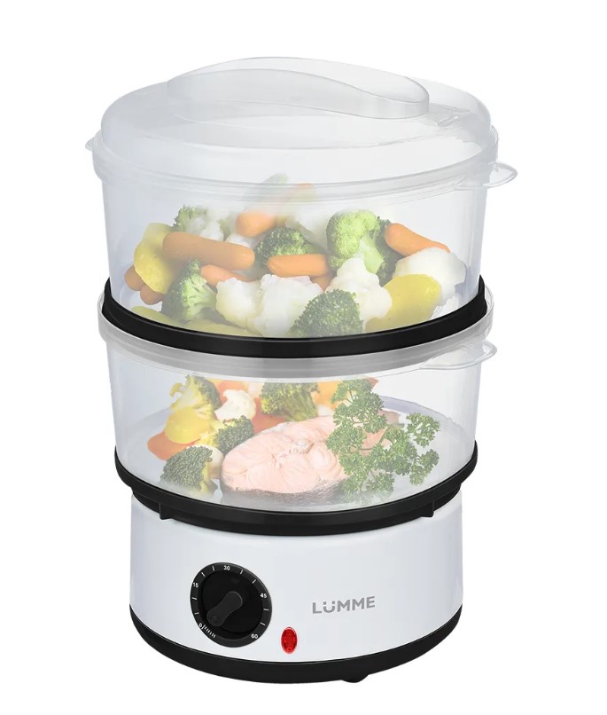 Двухуровневая пароварка для приготовления на пару разнообразных продуктов и блюд для поддержания здорового образа жизни и отличной формы. Пароварка снабжена 0.5-литровой чашей для воды и двумя 2.5-литровыми прозрачными резервуарами для продуктов, оборудованными ручками для более удобного перемещения. Приготовление на пару сводит к минимуму уровень холестерина в продуктах, приготовленных посредством жарки. Пароварка сохраняет питательные вещества овощей, мяса, птицы и рыбы, их натуральный вкус и аромат, обеспечивает самый деликатный способ тепловой обработки, что особенно важно для придерживающихся диеты людей. Пароварка имеет механическое управление, при помощи которого легко задаются все необходимые параметры для приготовления пищи на пару. Функция таймера позволит установить желаемое время приготовления продуктов в пароварке до 60 минут и больше не отвлекаться на контроль за ее работой вплоть до момента готовности. Пароварка снабжена надежной системой защиты прибора, исключающей возникновение опасных ситуаций, в том числе, связанных с недостаточным количеством воды.