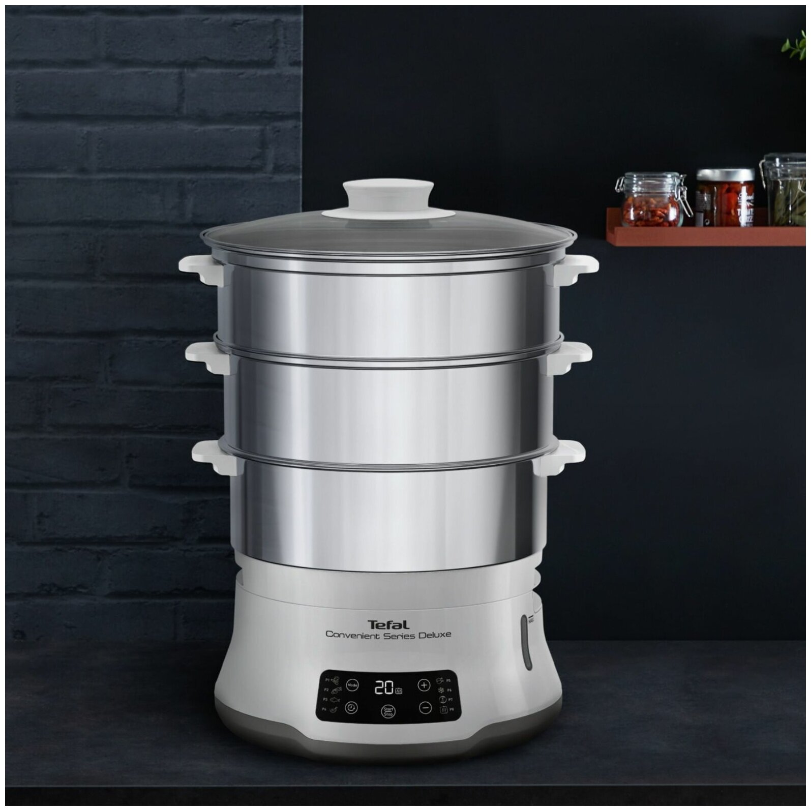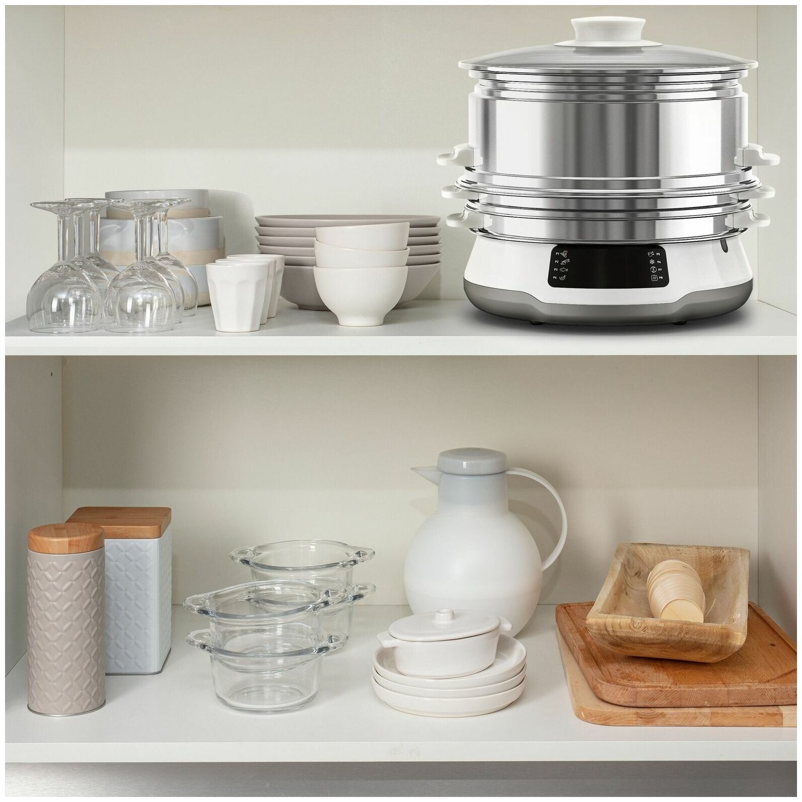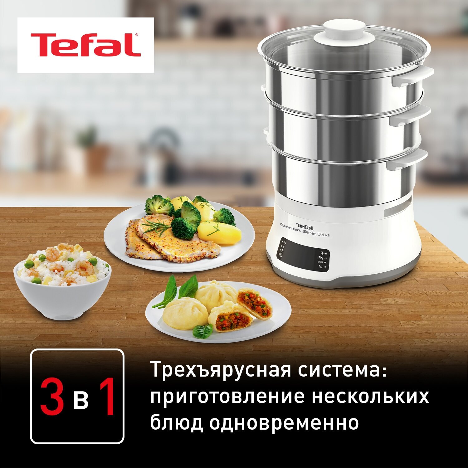 Невероятно простое приготовление на пару благодаря 8 встроенным программам, цифровому управлению и наглядному тачскрину Трехъярусная система позволяет готовить несколько блюд одновременно, значительно экономя время Чаши из нержавеющей стали прочные и долговечные, а пароварка сохраняет ремонтопригодность в течение 15 лет 40 вкусных и полезных блюд для всей семьи – достаточно лишь загрузить специальную книгу рецептов Благодаря штабелированию чаши и пароварка не займут много места Чаши из нержавеющей стали, чаша для риса, поддон для стекания сока и крышка пригодны для мытья в посудомоечной машине Объемного резервуара для воды хватит на 45 минут, и его можно пополнять прямо в процессе готовки Совместимые стеклянные баночки (в комплект не входят, доступны для покупки отдельно, XA6060) для закусок и десертов