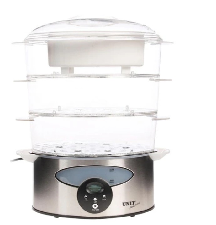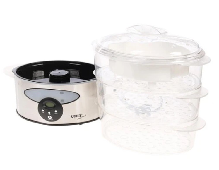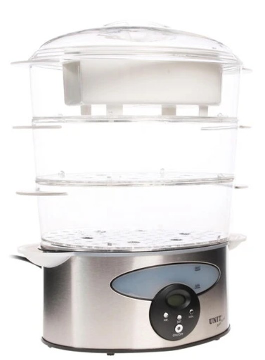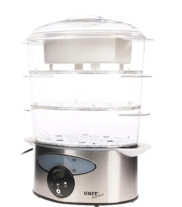 Особенность модели Unit USC-181 заключается в наличии встроенного дисплея, который значительно упрощает процесс использования прибора. Объем этой пароварки с тремя ярусами составляет 9,6 литров. В комплекте к прибору вы найдете и специальную чашу, предназначенную для варки риса объемом 1,1 литра.