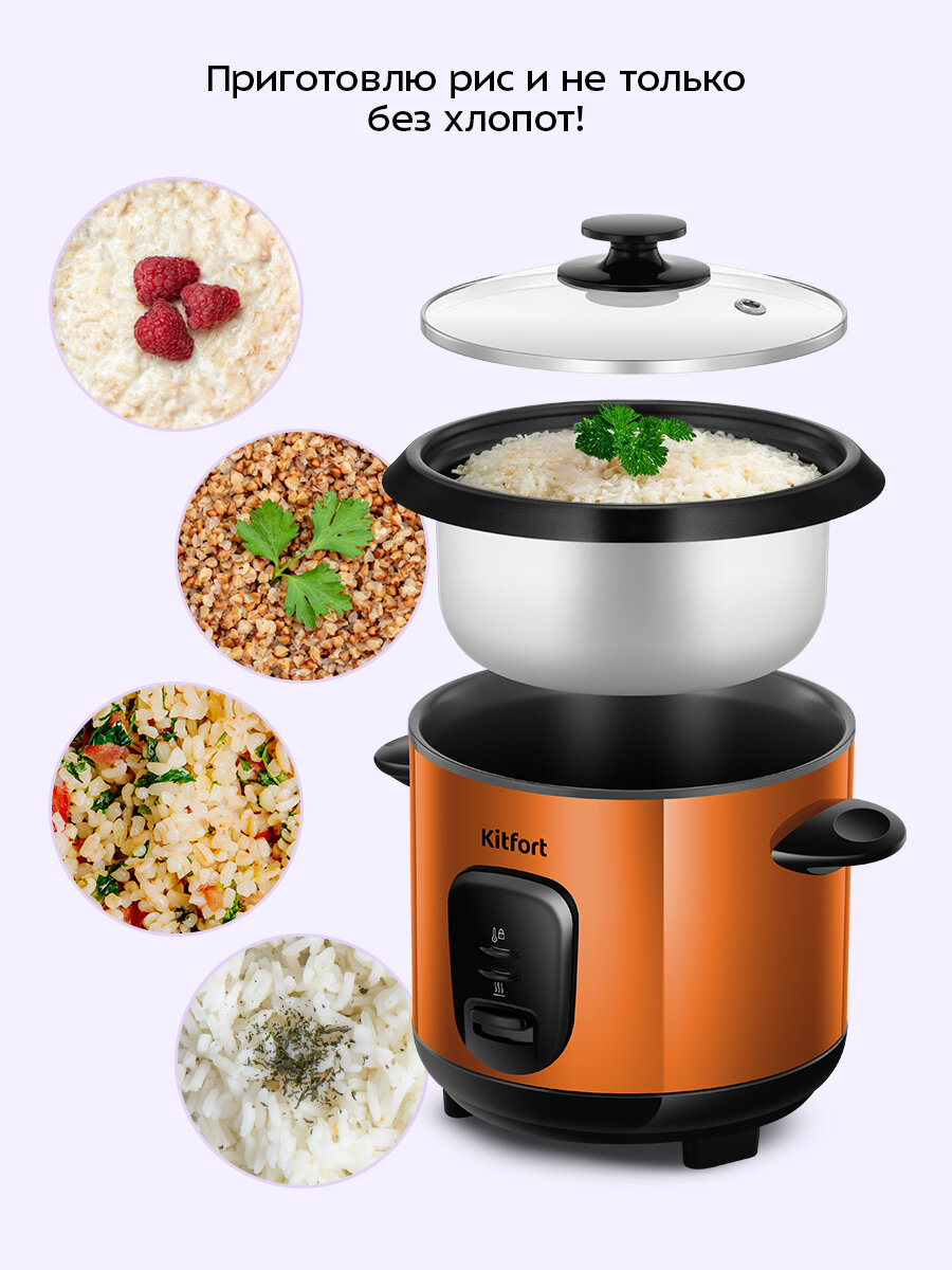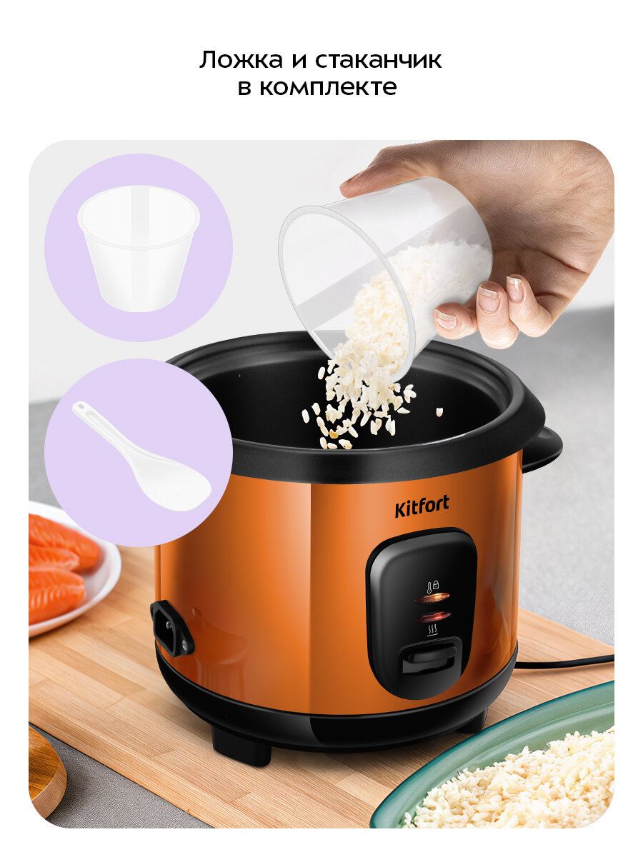 Компактная рисоварка КТ-232 впишется даже в небольшую кухню. Работая от сети, она сочетает эргономичный дизайн с удобством использования – просто подключите, добавьте рис и наслаждайтесь безупречным результатом!