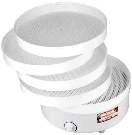 Устройство для сушки овощей, фруктов и другой продукции. Подходит не только для растительных продуктов - в камере также вялят рыбу, птицу и мясо. Электросушилка изготовлена из огнеупорного и жаропрочного пластика, имеются пять поддонов, вентилятор, регулировка температуры сушки, терморегулятор для поддержания постоянной заданной температуры сушки, аварийный термовыключатель. Аппарат изготовлен из экологичных материалов.
