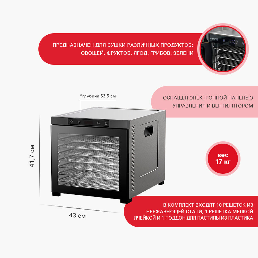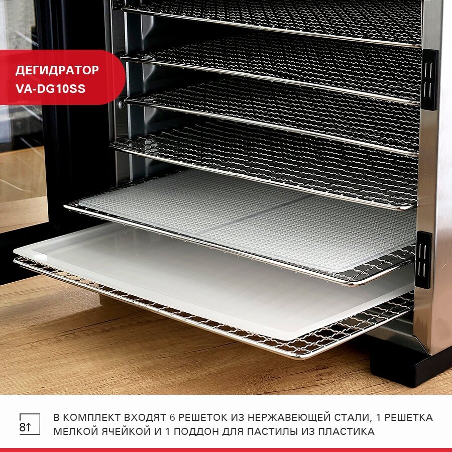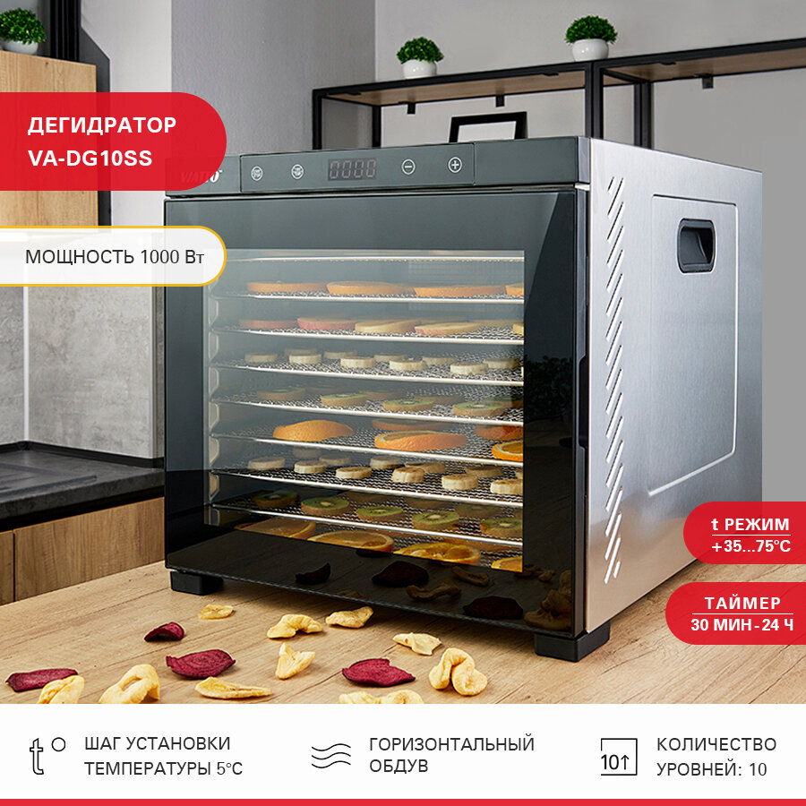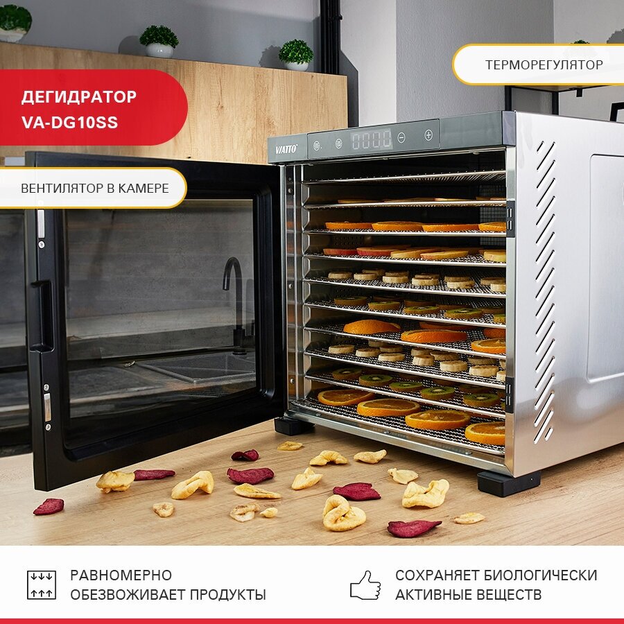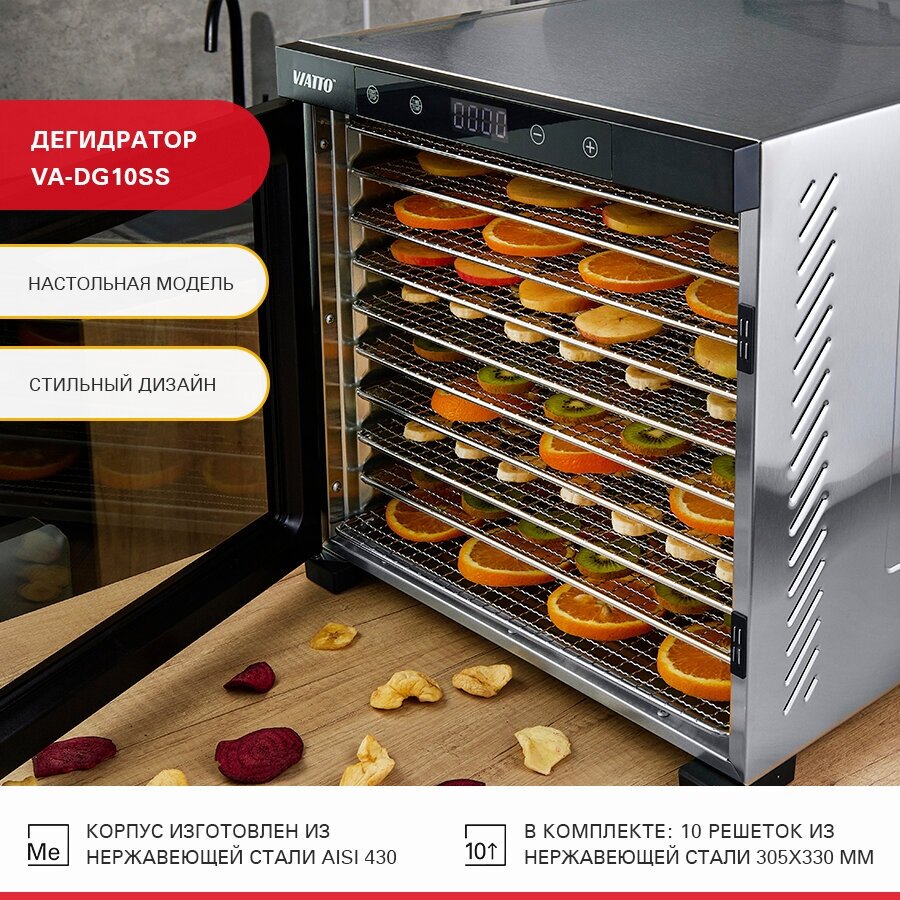 Сушилка для фруктов и овощей Viatto VA-DG10SS 160944 предназначена для извлечения влаги из продуктов.