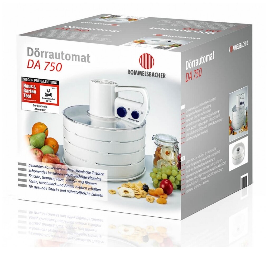 Сушка для фруктов Rommelsbacher DA 750 позволяет сделать вкусные заготовки на зиму, подготовить сушёные фрукты, которые используются для приготовления выпечки, компотов и многого другого.
