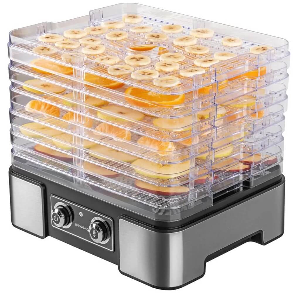 Endever Skyline FD-61 - это сушка для овощей и фруктов с мощностью 700 Вт и регулировкой температуры от 35 до 70 градусов. Модель обеспечит быстрое и равномерное высушивание продуктов, а автоматический вентилятор гарантирует оптимальное воздушное циркулирование. Благодаря этому устройству вы сможете приготовить вкусные и полезные для здоровья лакомства в удобное для вас время.