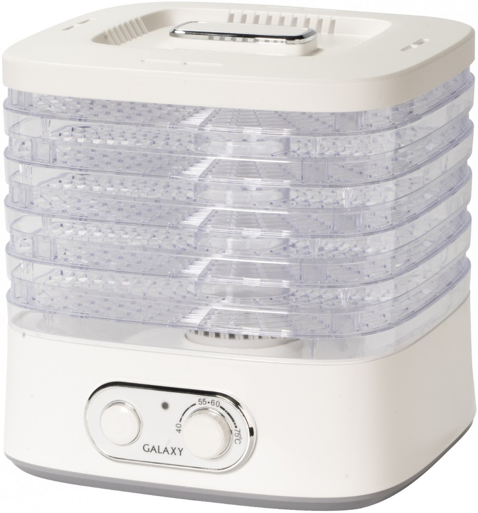 конвективная сушилка, механическое управление, мощность 350 Вт, число поддонов: 5, регулировка температуры сушки, пластиковый корпус, поддоны из прозрачного пластика