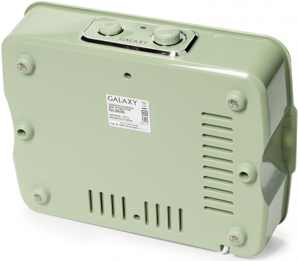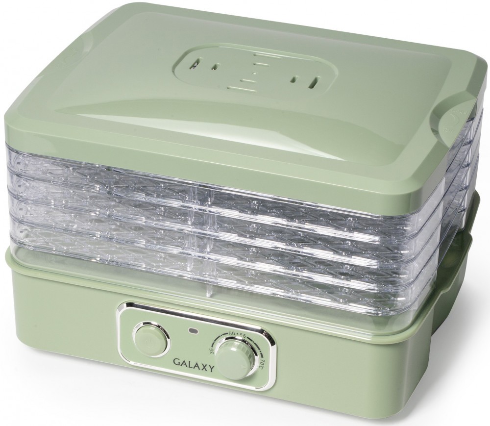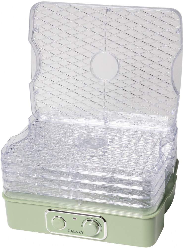 конвективная сушилка, механическое управление, мощность 350 Вт, число поддонов: 5, регулировка температуры сушки, пластиковый корпус, поддоны из прозрачного пластика