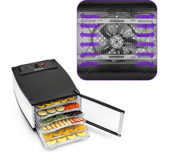 Электрическая сушилка предназначена для сушки овощей, фруктов, ягод, грибов, корнеплодов, трав и зелени, а также хлеба.