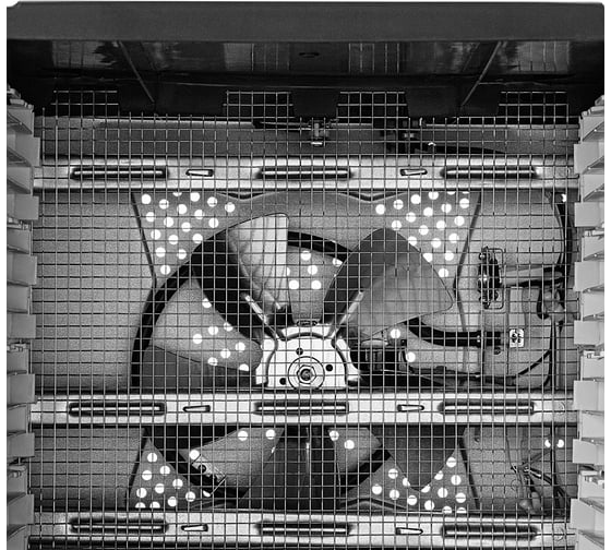 В сушилку установлен мощный нагревательный элемент и вентилятор, обеспечивающий равномерное распределение нагретого воздуха по всему объему камеры. Благодаря горизонтальному обдуву смешение запахов при сушке одновременно разных продуктов минимально.