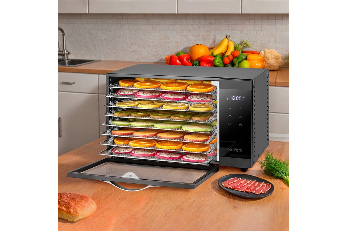 Электрическая сушилка предназначена для сушки овощей, фруктов, ягод, грибов, корнеплодов, трав и зелени, а также мяса и рыбы, хлеба. С помощью специальных сплошных поддонов можно готовить пастилу.