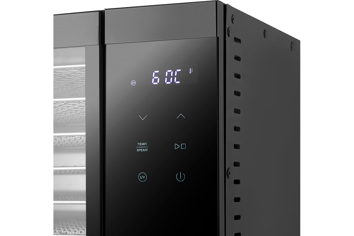 Прибор позволяет установить температуру сушки в диапазоне 30–70 оС с шагом 1 оС. Сушилка оснащена таймером, который позволяет установить время в диапазоне: 1–24 часа с шагом 5 минут.