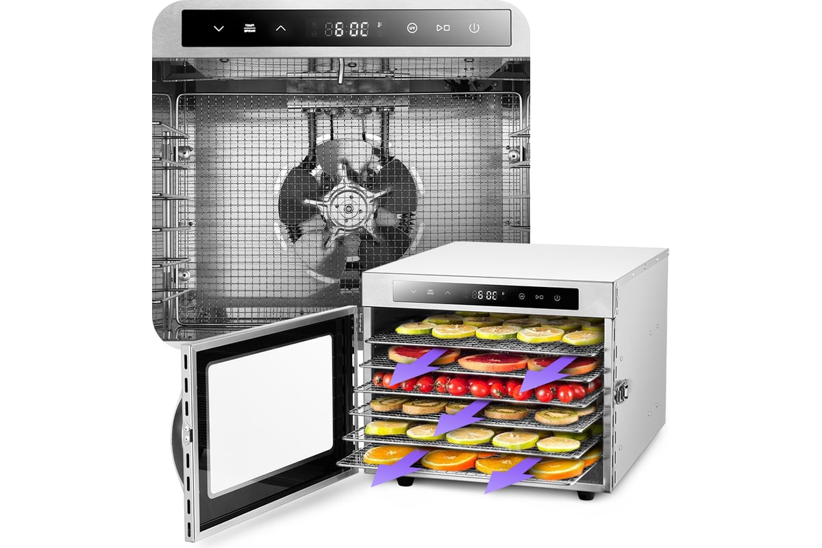 В комплект сушилки входят 6 поддонов из нержавеющей стали, 6 сеток и 6 поддонов для пастилы.
