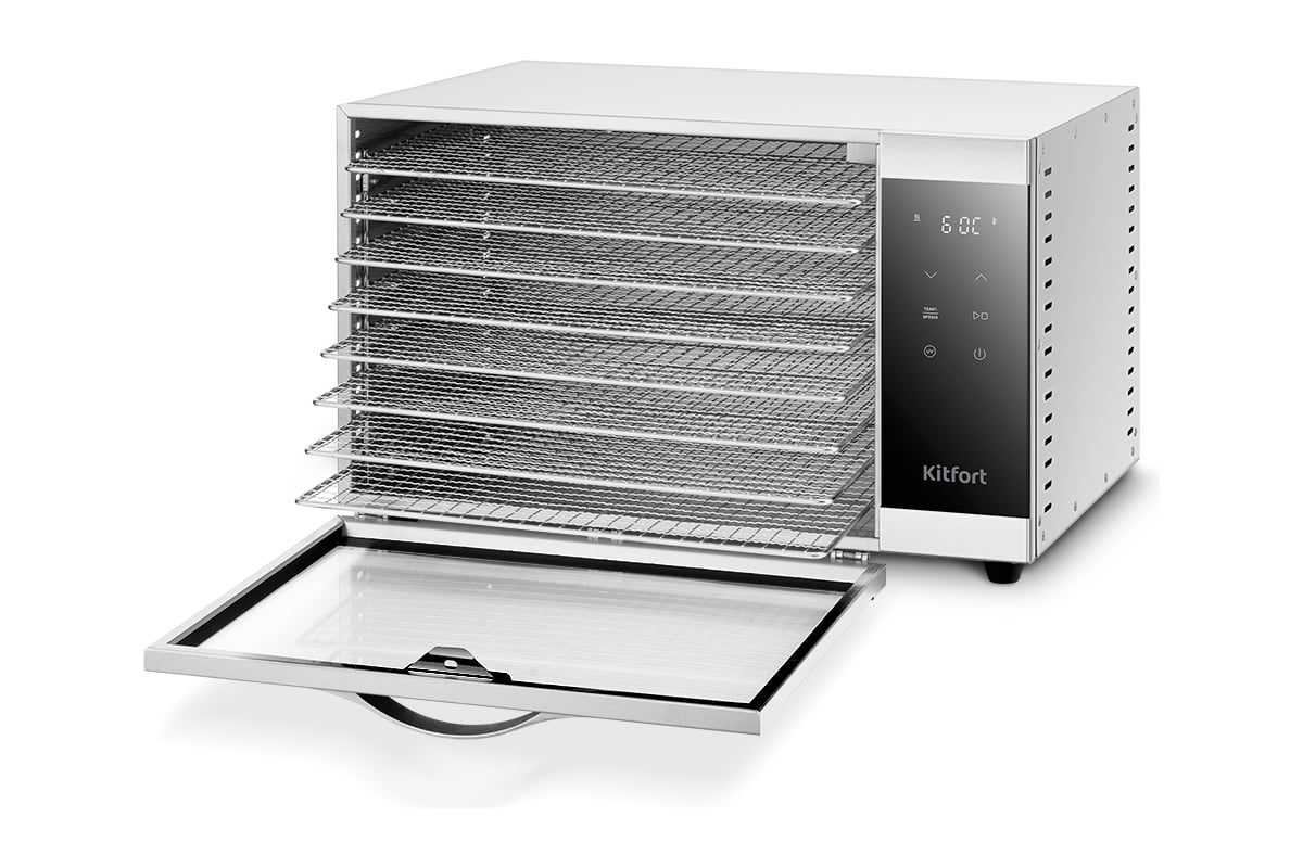 В комплект сушилки входят 8 поддонов из нержавеющей стали, 8 сеток и 8 поддонов для пастилы.