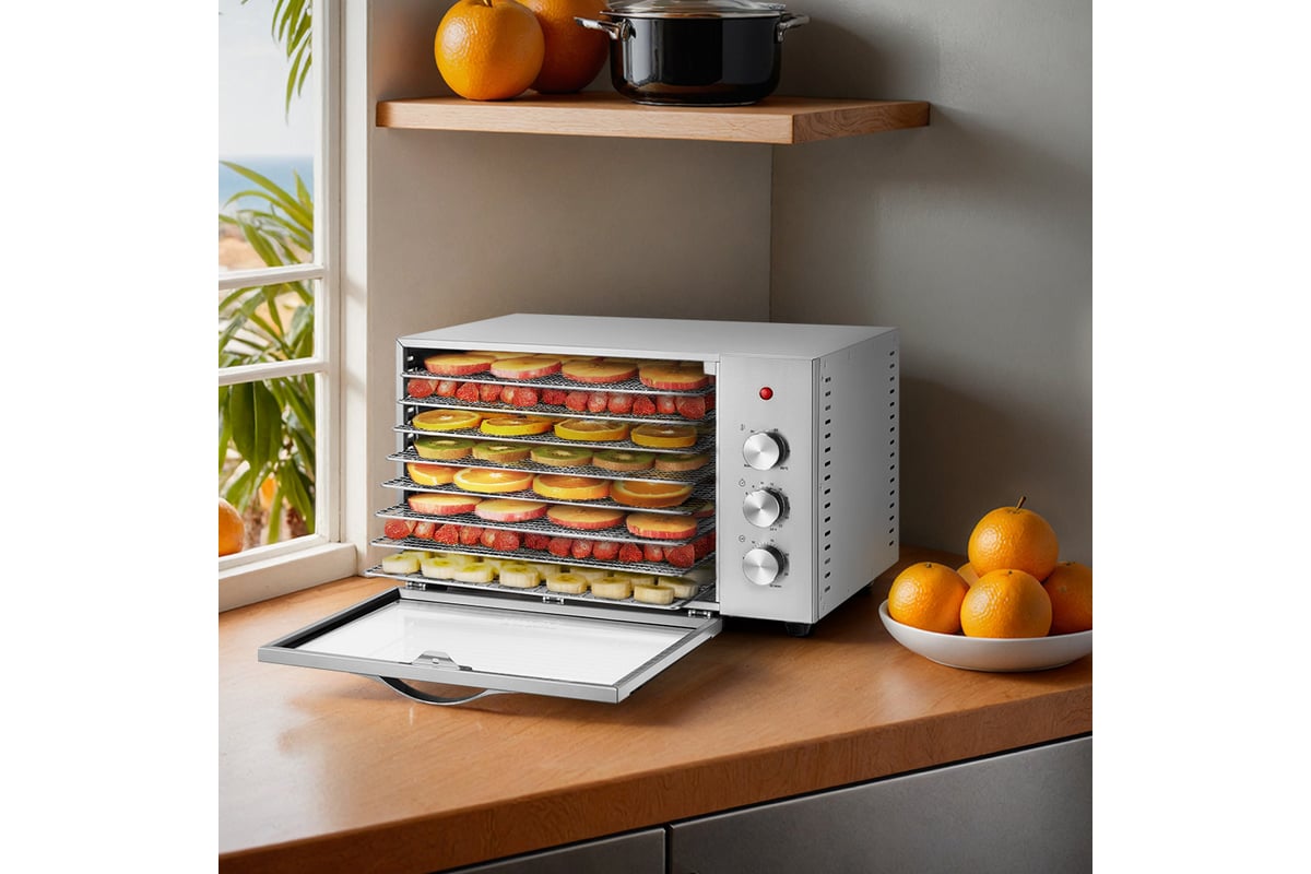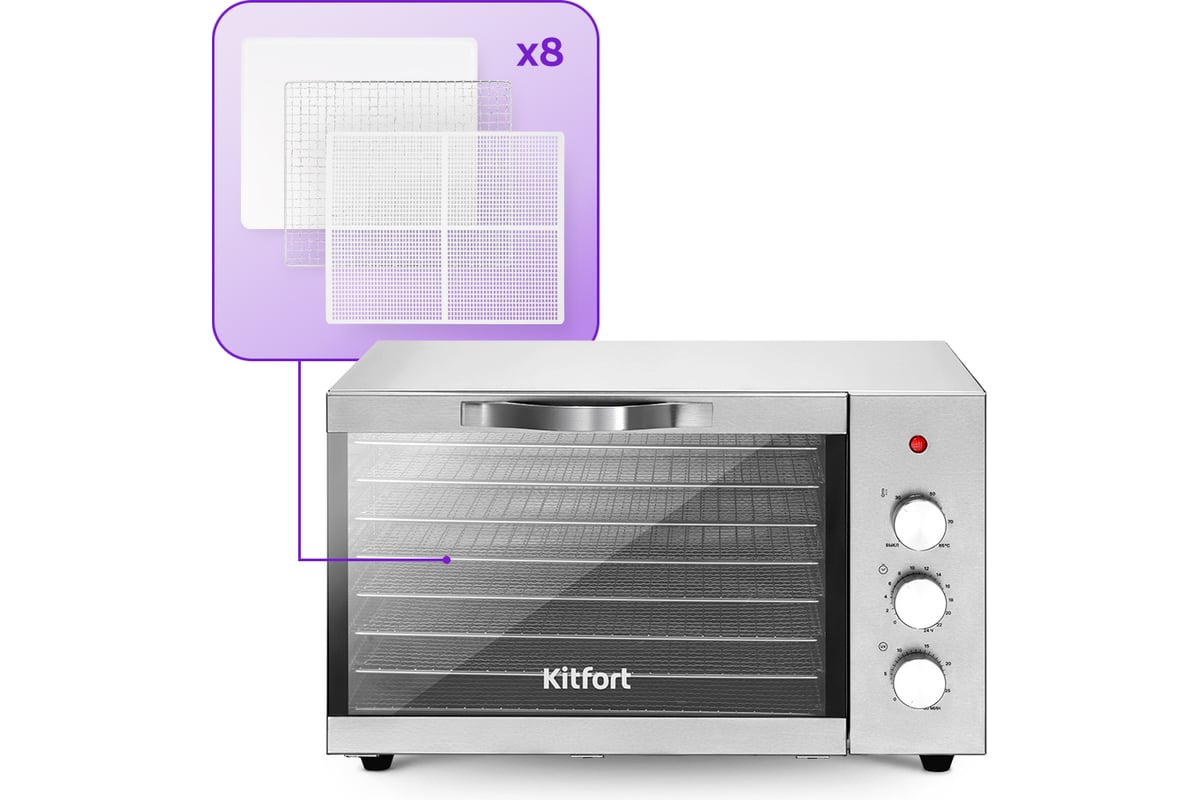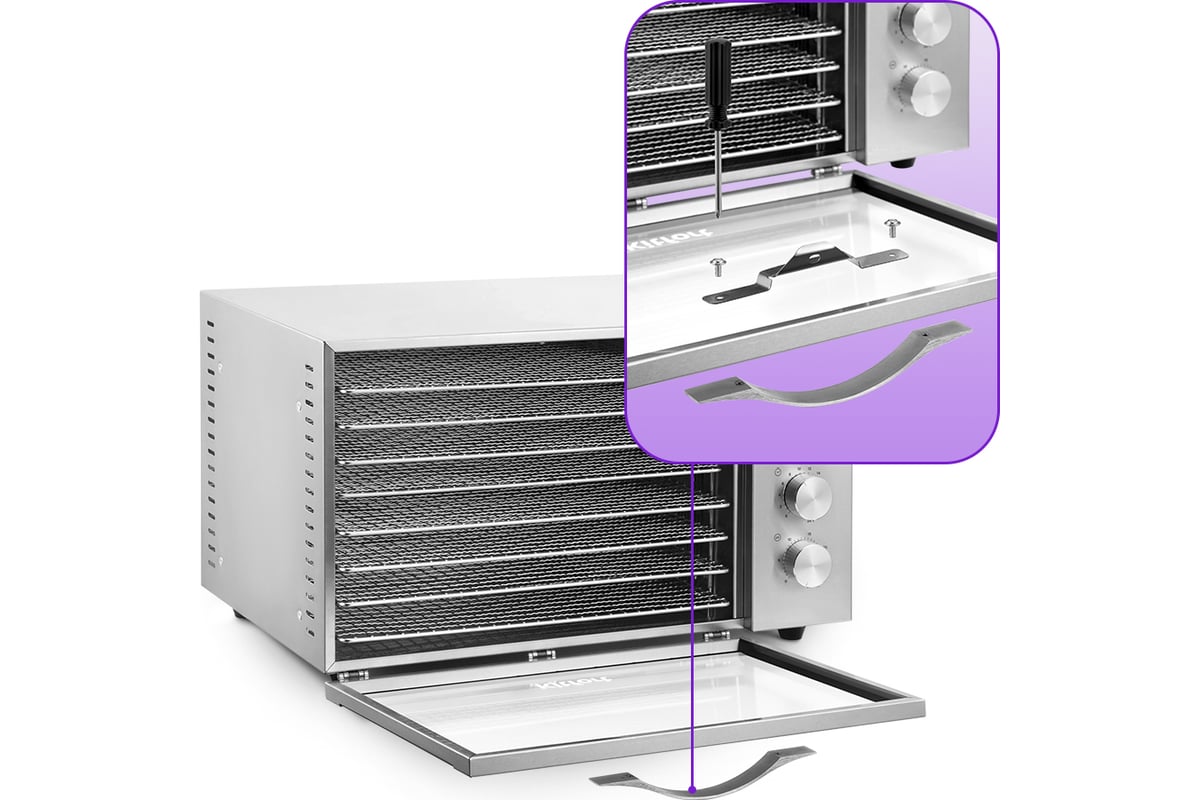 В комплект сушилки входят 8 поддонов из нержавеющей стали, 8 сеток и 8 поддонов для пастилы.