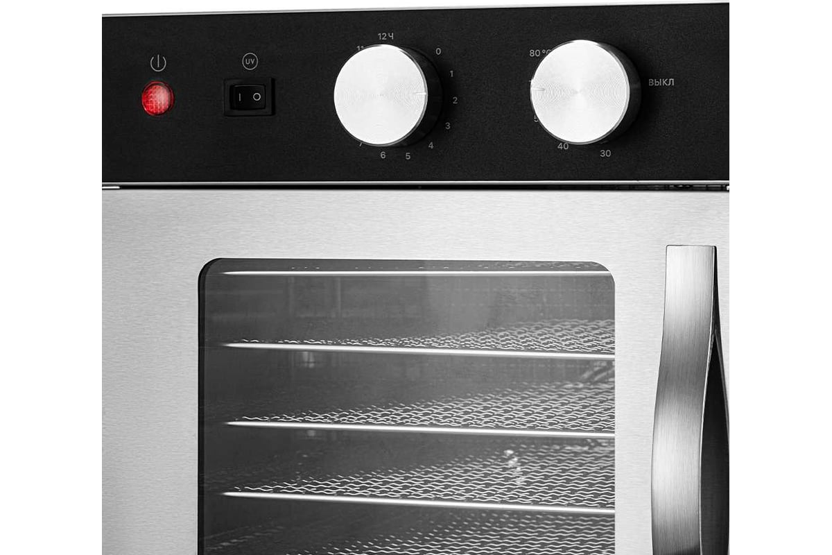 Прибор позволяет установить температуру сушки в диапазоне 30–80 оС. Сушилка оснащена таймером, который позволяет установить время сушки до 12 часов.