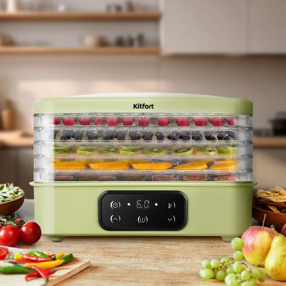С электрической сушилкой Kitfort KT-1992 у вас под рукой будет всегда живая еда. Прибор насушит на зиму фрукты, овощи, ягоды, грибы, корнеплоды, зелень, хлеб и многое другое. Это не только вкусно, но и полезно!