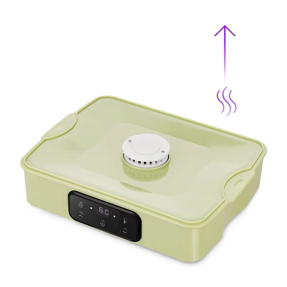 На передней панели есть регулятор, с помощью которого вы можете установить температуру в диапазоне от 35 до 70 °C с шагом 5 °C и время в диапазоне от 1 до 72 ч работы с шагом 30 мин. На дисплее отображаются установленная температура и оставшееся время.