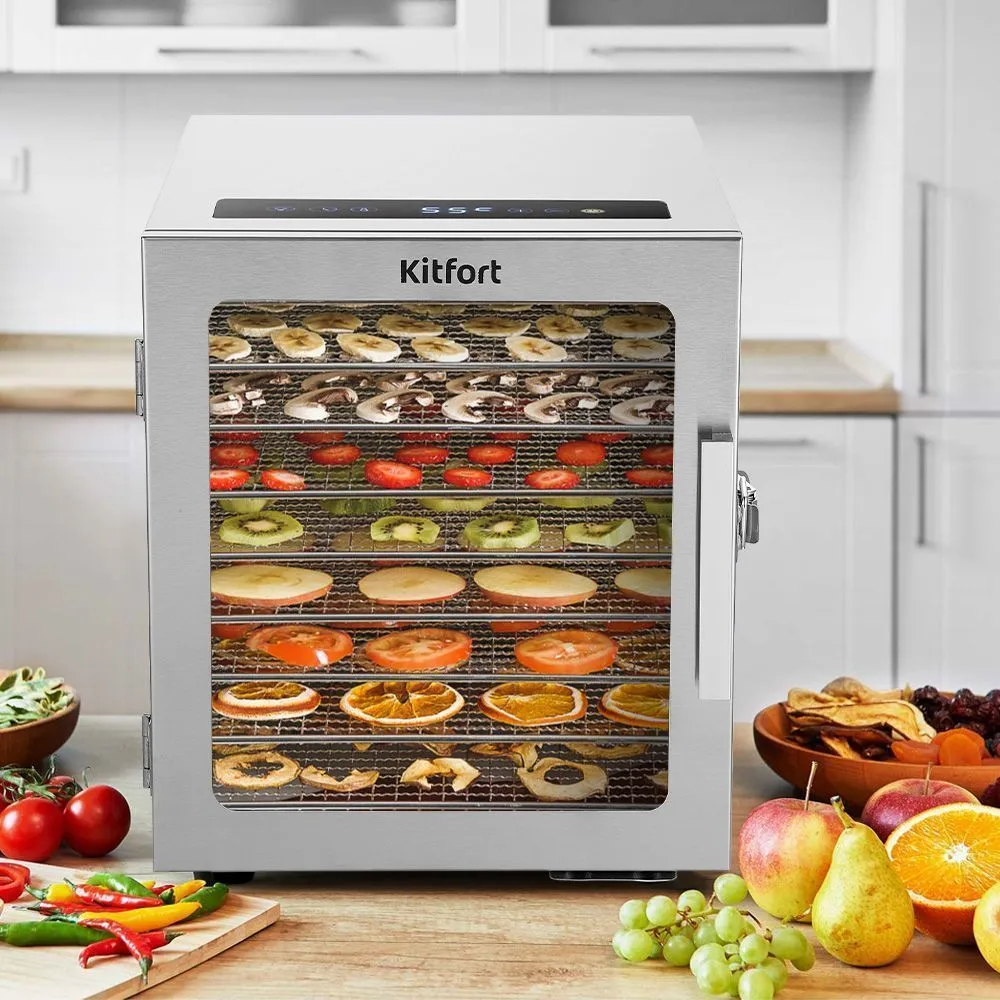 Со стильной сушилкой для фруктов и овощей KT-1998 у вас под рукой будет всегда живая еда. Электрическая сушилка предназначена для сушки овощей, фруктов, ягод, грибов, корнеплодов, трав и зелени, а также мяса и рыбы, хлеба.