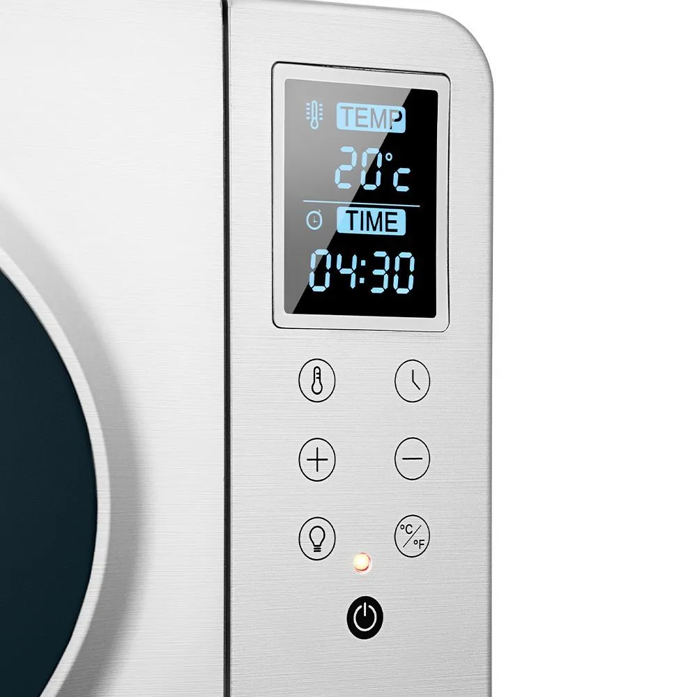 Температуру сушки можно изменить от 20 до 90 °С с шагом 5 °С. Сушилка оснащена таймером до 24 часов работы с шагом 30 минут.