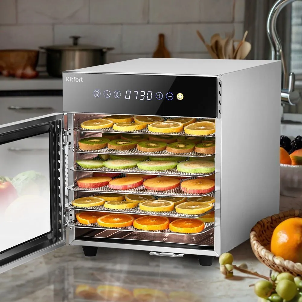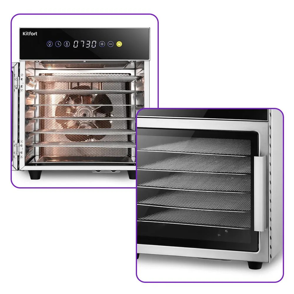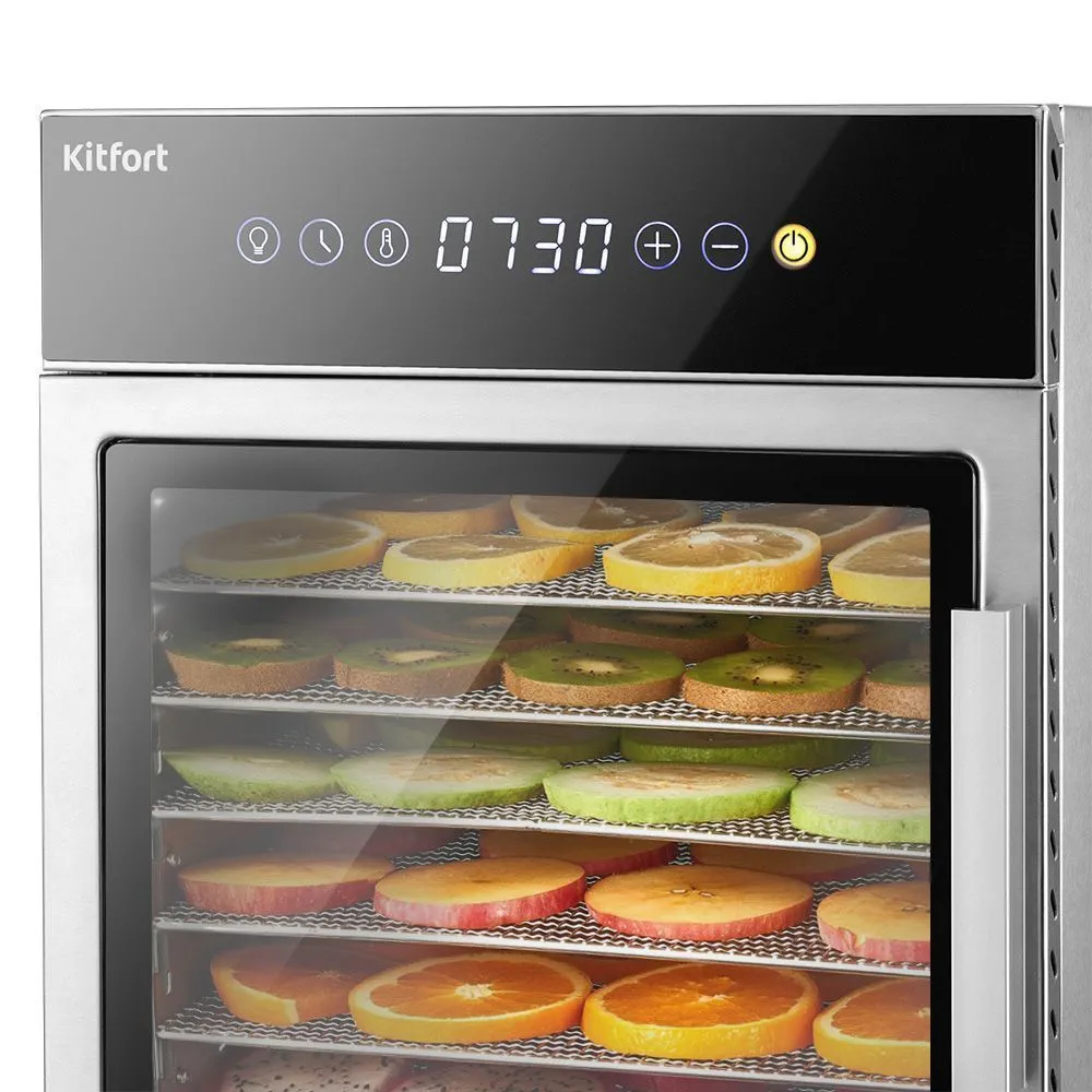 С электросушилкой Kitfort KT-4903 у вас под рукой всегда будет живая еда. Сушилка быстро насушит вам фрукты, овощи и ягоды, сохраняя их полезные свойства. У вас больше не будет стоять вопрос, куда деть богатый урожай. Сушилка – это идеальный выход!