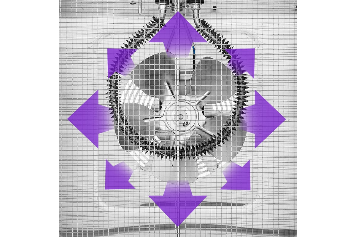 В сушилку установлен мощный нагревательный элемент и вентилятор, обеспечивающий равномерное распределение нагретого воздуха по всему объему камеры. Благодаря горизонтальному обдуву смешение запахов при одновременной сушке разных продуктов минимально.