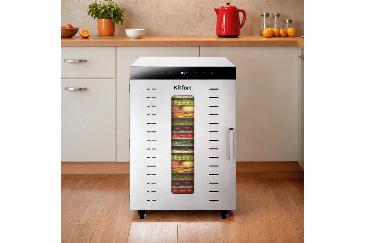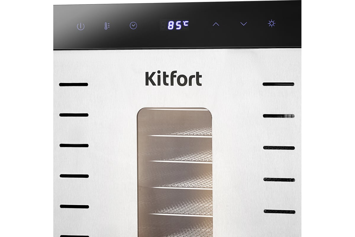 Температуру сушки можно изменить от 30 до 90 °С сшагом 5 °С. Сушилка оснащена таймером до 24 часов работы с шагом 30 минут. Подсветку камеры сушилки можно включать и выключать во время сушки.