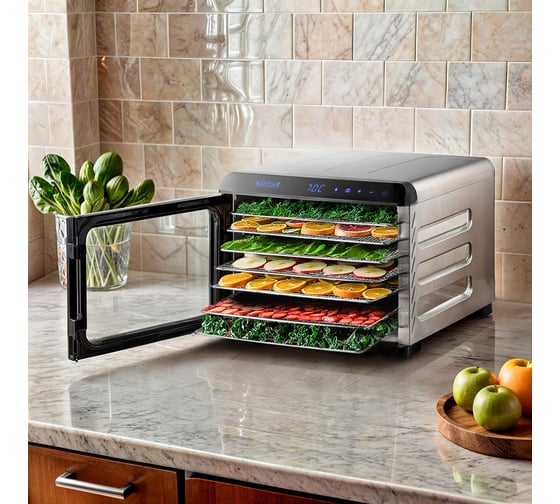 Сушилка для овощей и фруктов Kitfort КТ-4931 предназначена для извлечения влаги из продуктов.