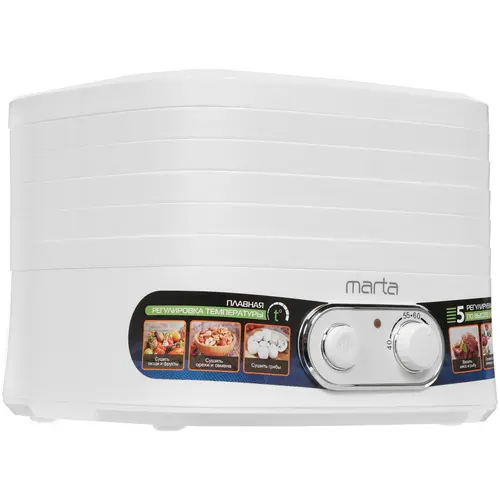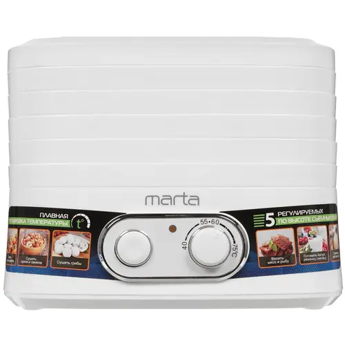 Сушилка для овощей и фруктов обеспечивает равномерную сушку овощей, фруктов, трав, зелени, грибов и других продуктов с сохранением в них полезных веществ. Она оборудована 5 регулируемыми по высоте съемными секциями. Встроенный вентилятор способствует равномерному распределению тепла между секциями для качественной сушки продуктов. Сушилка для овощей и фруктов имеет корпус и поддоны из термостойкого пищевого пластика, безопасного для здоровья. С помощью поворотного регулятора позволяется плавно настраивать температуру сушки.