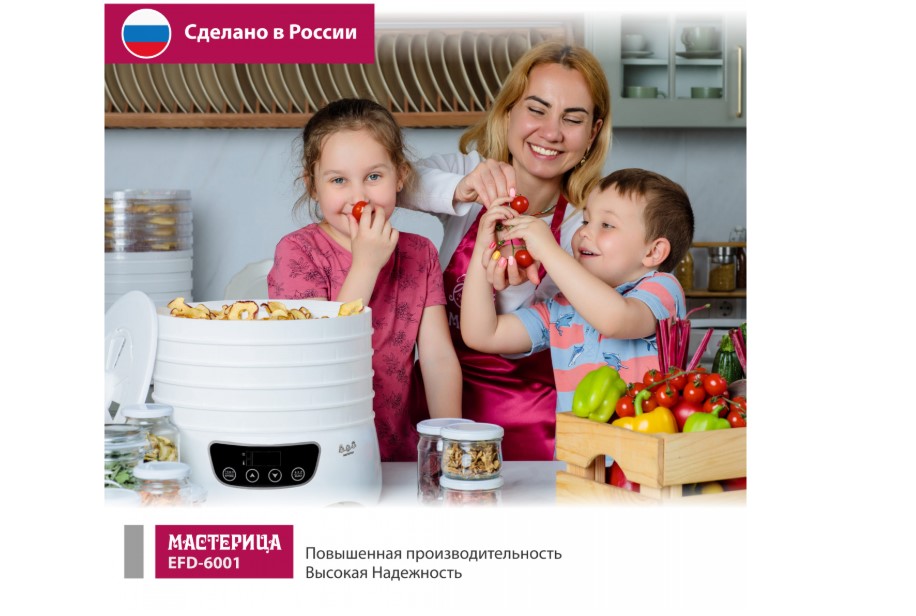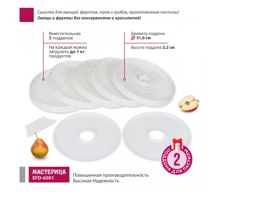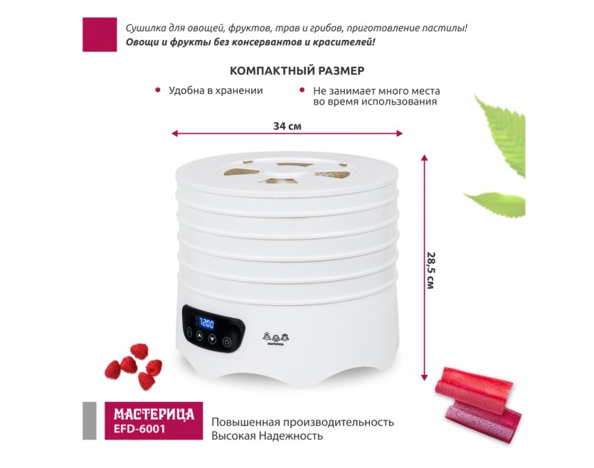 - Сушилка для овощей и фруктов Мастерица EFD-6001 белый, 5 поддонов