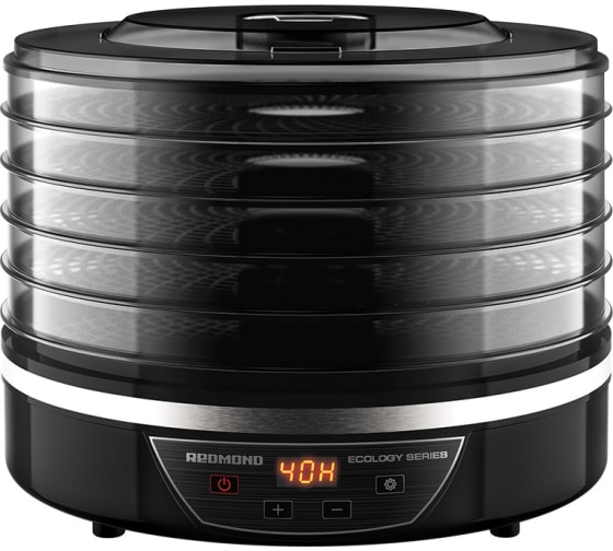 Сушилка для фруктов REDMOND FD1102 – устройство для сушки овощей и грибов, приготовления сухофруктов, а также здоровых снеков: пастилы, фруктовых и картофельных чипсов. Сушилка имеет 5 поддонов из прочного пластика и оснащена светодиодным дисплеем.