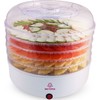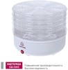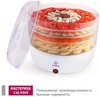 При желании вы сможете положить в сушилку не только овощи и фрукты, но и грибы и травы. Изделие изготовлено из качественного пластика, оно легкое и компактное. Белый корпус с прозрачными вставками позволяет сушилке вписаться в любой интерьер. Объем сушильной камеры составляет 19 л, способ подачи воздуха - вертикальный. Технология позволяет регулировать температуру сушки в диапазоне 33-45 градусов.