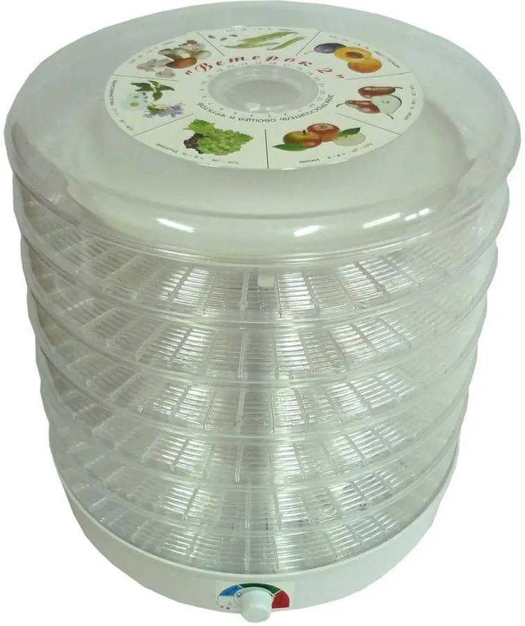 Поможет сделать в домашних заготовки сухофруктов, высушить овощи, ягоды, грибы, травы, мясные и рыбные чипсы, завялить рыбу или мясо, приготовить любые сухарики, а также сделать домашнюю лапшу. Позволяет загрузить единовременно до 12 кг сырья. Комплектуется поддоном для пастилы.
