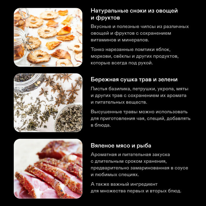 Вертикальное размещение вентилятора дает лучшую просушку без необходимости преставления поддонов. Интуитивное управление, таймер до 19ч