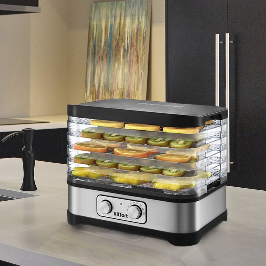 Описание: С электросушилкой Kitfort KT-1912 у вас под рукой будет всегда живая еда. Прибор насушит на зиму овощи, ягоды, грибы, корнеплоды, траву и зелень, а также мясо, рыбу, хлеб и многое другое. Это не только вкусно, но и полезно! Сушилка может работать до 72 часов подряд.