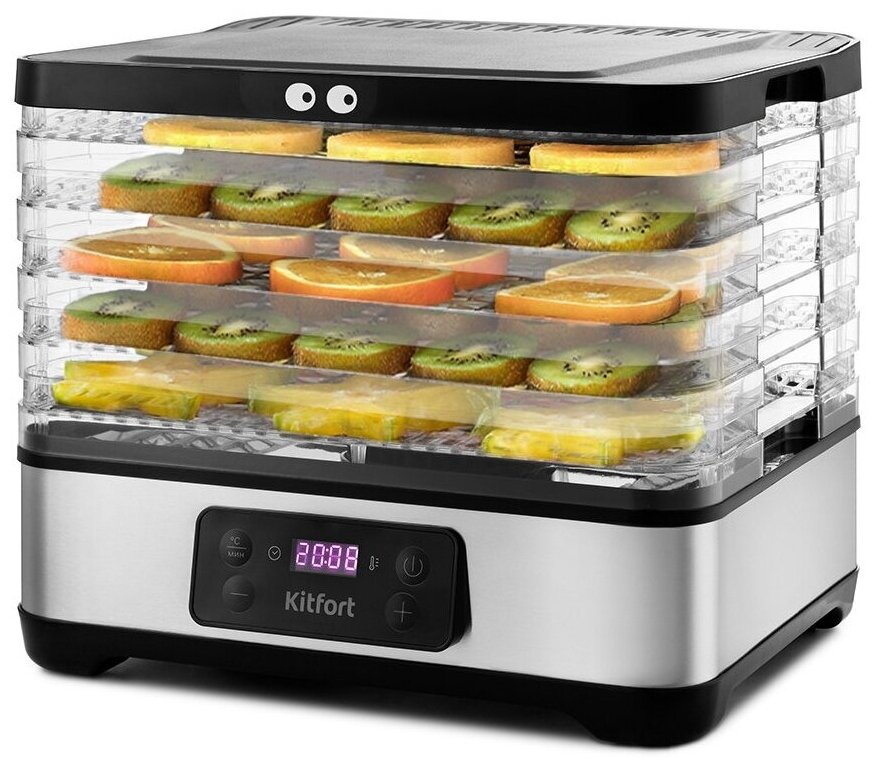 Сушилка имеет в комплекте 5 вместительных поддонов из прозрачного безопасного пластика, поэтому вы легко можете наблюдать за процессом сушки.