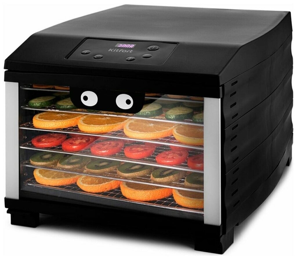 "1. Сушилка – 1 шт. 2. Поддоны для сушки — 6 шт. 3. Поддон для жидкости — 1 шт. 4. Руководство по эксплуатации – 1 шт. 5. Коллекционный магнит – 1 шт.* *опционально "Цвет