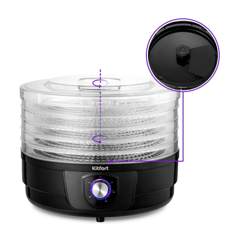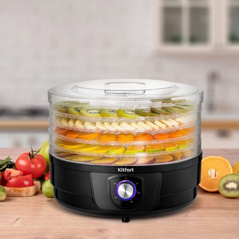 "1. Сушилка для овощей и фруктов — 1 шт. 2. Поддон — 5 шт. 3. Крышка — 1 шт. 4. Руководство по эксплуатации — 1 шт. 5. Коллекционный магнит — 1 шт.* *опционально"Цвет