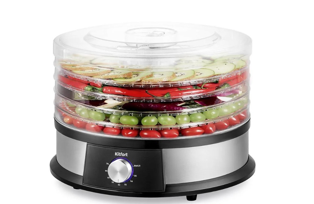 "1. Сушилка для овощей и фруктов — 1 шт. 2. Поддон — 5 шт. 3. Крышка — 1 шт. 4. Руководство по эксплуатации — 1 шт. 5. Коллекционный магнит — 1 шт.* *опционально"Цвет