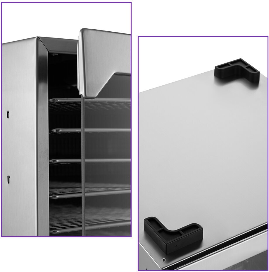 Дверца сушилки на магните, поэтому легко открывается и закрывается без лишнего шума. Ножки обеспечат надёжную фиксацию сушилки на столе.