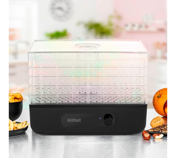 Сушилка имеет в комплекте 5 поддонов из прозрачного пластика, поэтому вы легко можете наблюдать за процессом сушки.