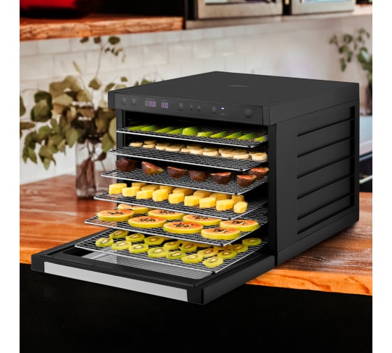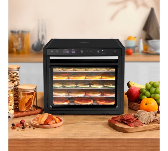 На сушилке можно установить температуру сушки в диапазоне 35–70 °С с шагом 1 градус. Сушилка оснащена таймером до 99 часов работы с шагом 1 час.