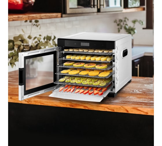 Электрическая сушилка предназначена для сушки овощей, фруктов, ягод, грибов, корнеплодов, трав и зелени, а также мяса и рыбы, хлеба. С помощью специальных сплошных поддонов можно готовить пастилу.