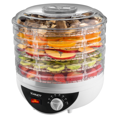Особенности модели: Регулировка высоты поддонов, одновременно можно сушить до 3 кг продуктов, встроенный вентилятор выравнивает температуру на разных уровнях и ускоряя процесс сушки