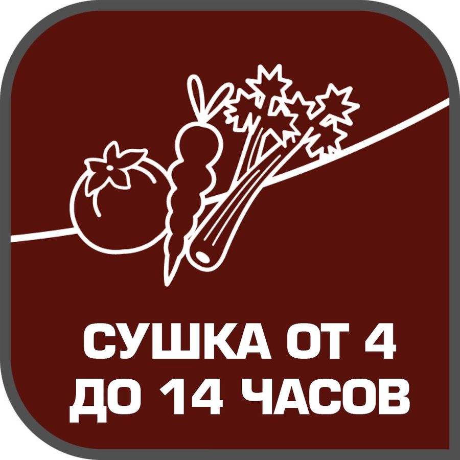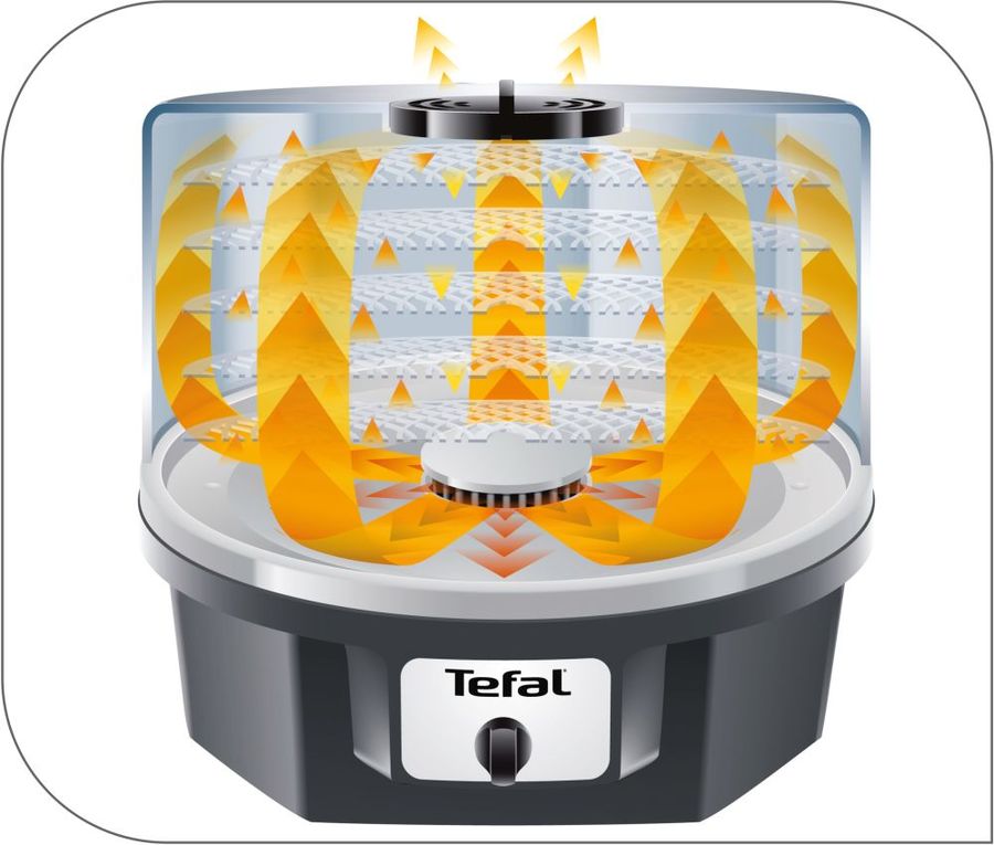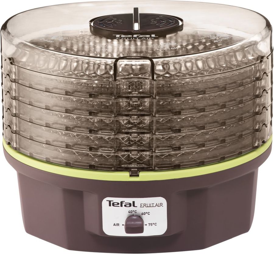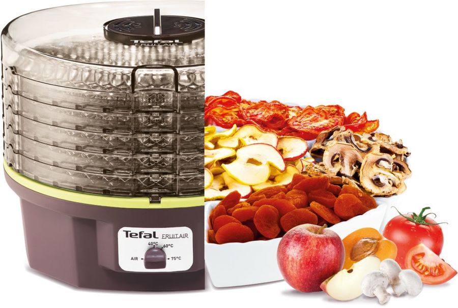 Особенности 4 рабочих режима: режим вентиляции, нагрев 40°С, нагрев 60°С, максимальный нагрев 75°С. Встроенный вентилятор, гибкий поддон для игредиентов с высоким содержанием сока. Тип: конвективная. 5 съемных секций эллиптической формы (40×31 см) из прозрачного пластика. Активная циркуляция горячего воздуха.