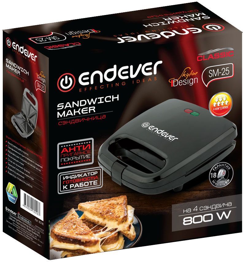 мощность 800Вт, управление- механическое, антипригарное покрытие, индикатор нагрева, цвет- черный