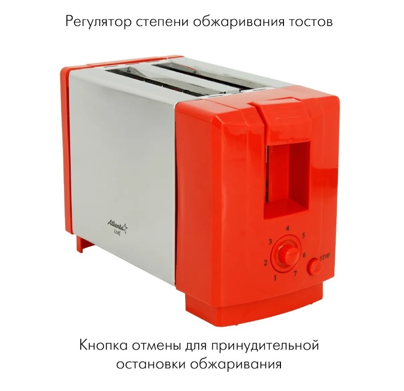 Нержавеющая сталь, 2 ломтика, поддон, установка времени, мощность 750 Вт.