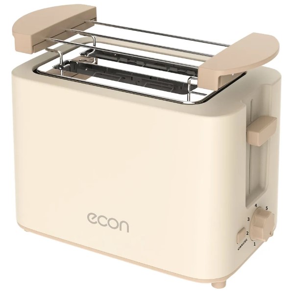 Стильный и лаконичный тостер бренда ECON мощностью 700 Вт на 2 тоста с 7 уровнями поджаривания, функцией подогрева булочек и функцией "Рисунок на тосте" станет вашим помощником на пути к идеальному завтраку. Термоизолированный корпус нашего тостера выполнен в белом цвете. Он прост в управлении и будет отлично смотреться как в классическом, так и в современном интерьере кухни. В комплекте с тостером поставляется металлическая подставка для подогрева бутербродов, булочек и других продуктов. Тостер имеет специальную конструкцию нагревательных элементов, благодаря чему во время приготовления он будет оставлять на тостах рисунок. С помощью 7 уровней поджаривания тосты могут иметь цвет от белого до коричневого. Если установить значение №3, то хлеб получится идеального золотистого цвета.