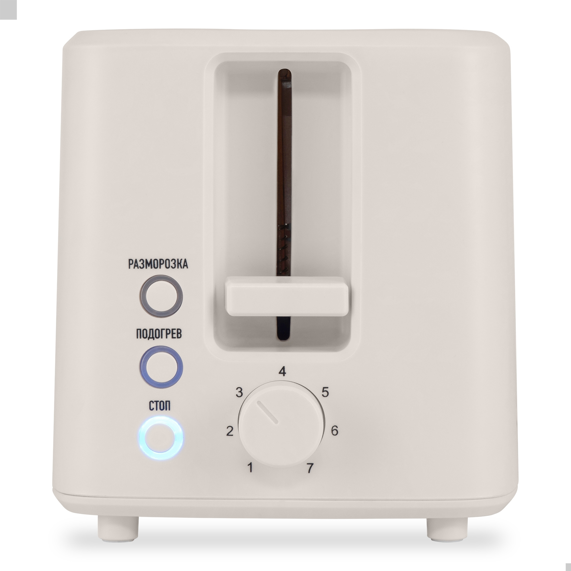 7 степеней обжарки. Регулируемая интенсивность подогрева позволяет получить как слегка подсушенный хлеб со светлой корочкой, так и хорошо прожаренные тосты.