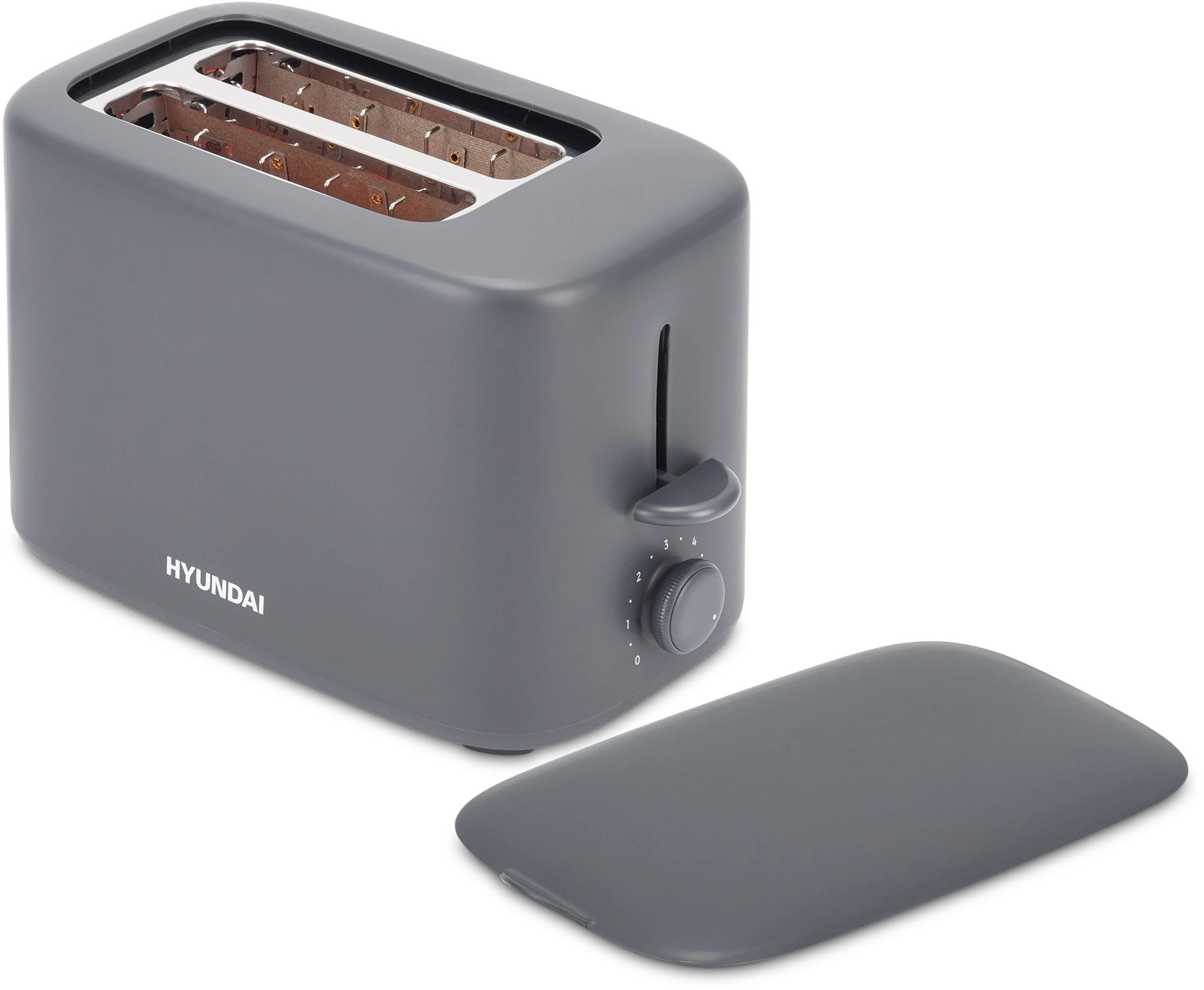 Компактный тостер со стандартными слотами для двух тостов, торцевое управление, трендовый серый цвет. Только тостер, все что нужно.