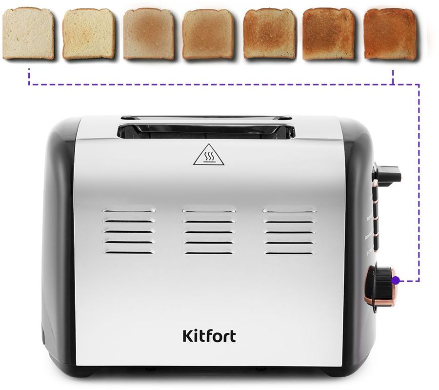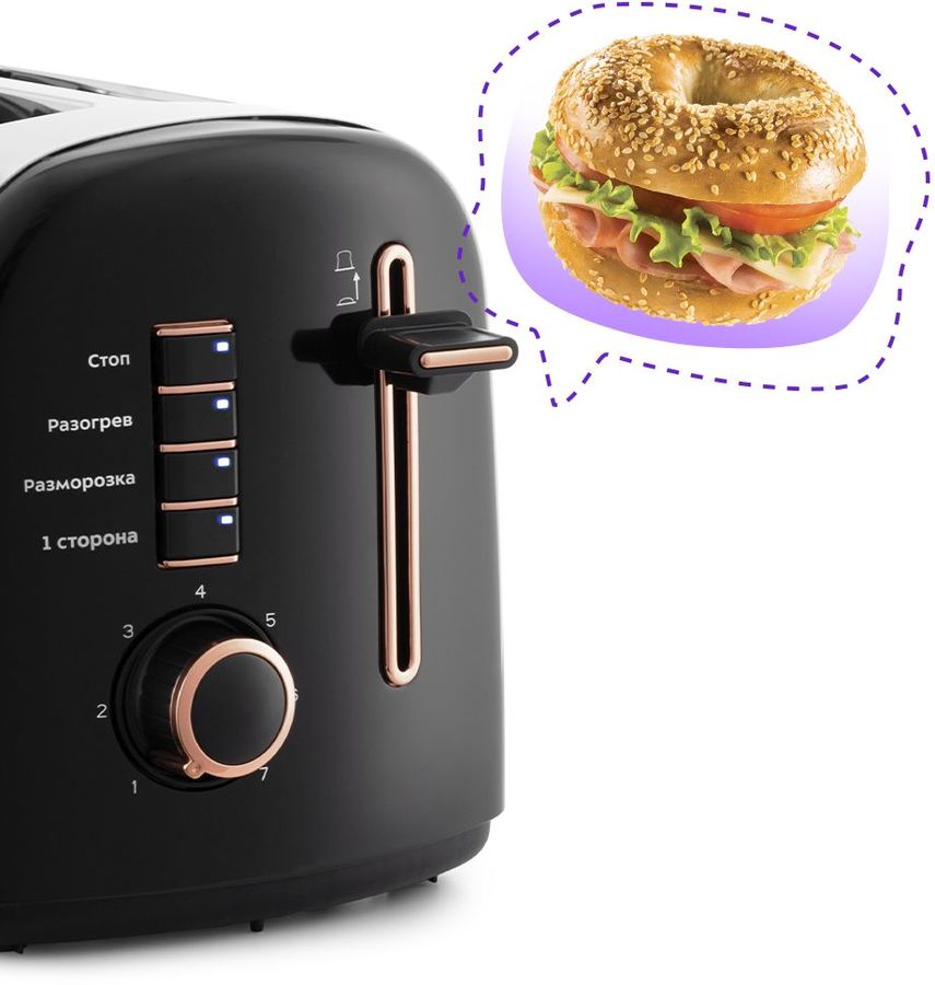 Описание Создан для тех, кто любит полакомиться ароматным, хрустящим и горячим поджаренным хлебом. С помощью поворотного регулятора вы можете настроить степень обжаривания разных сортов хлеба от лёгкой до сильной обжарки.