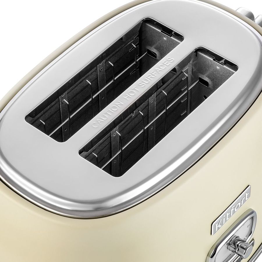 Тостер Kitfort КТ-2075 создан для тех, кто любит полакомиться ароматным и хрустящим поджаренным хлебом. Особый вкус и цвет тостов получаются такими благодаря карамелизации сахара, содержащегося в муке, в процессе приготовления. Тостер оснащён регулятором степени обжаривания и 4 кнопками.